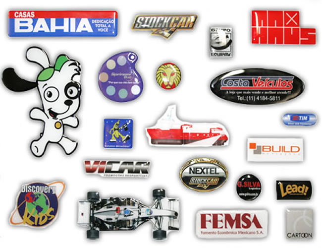 Etiqueta em PVC e adesivada, possui uma grossa camada de resina transparente em cima da impressão. A sua utilização é para identificação e promoção, geralmente muito usada na indústria moveleira.